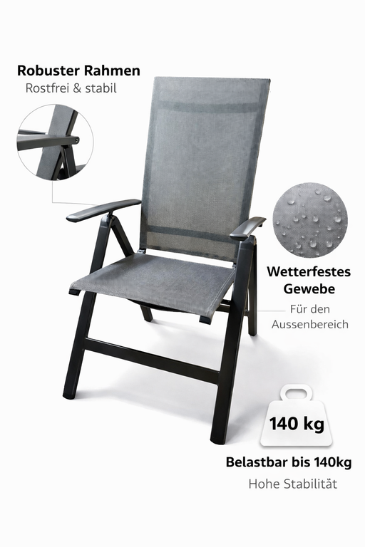 Vollständige Details anzeigenGartenstuhl Briest – Der Alu Klappsessel Allrounder mit verstellbarer Rückenlehne Verstellbare Rückenlehne über die Armlehnen Leichtes Aluminiu...