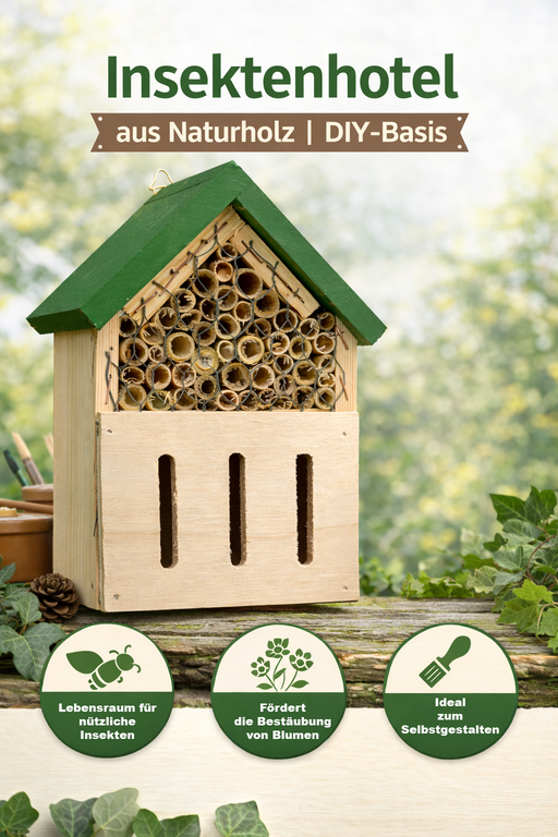 Vollständige Details anzeigenInsektenhotel „Green Roof“ – Naturholz Lebensraum für nützliche InsektenUnterstützt Wildbienen, Käfer, Schmetterlinge & andere Gartenhelfer....