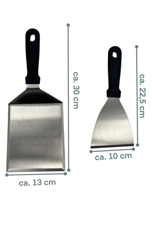 Vollständige Details anzeigenGrillspachtel & Wender aus Edelstahl – Profi-Set für BBQ, Plancha & Küche Dieses hochwertige Spachtel-Set aus 100 % rostfreiem Edelstahl is...