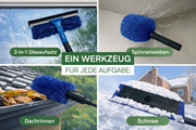 6 vielseitige Aufsätze : Waschbürste, Schneeschieber, Fensterabzieher mit Mikrofasertuch, Dachrinnenbürste, Spinnenbesen – ideal für jede Jahreszeit